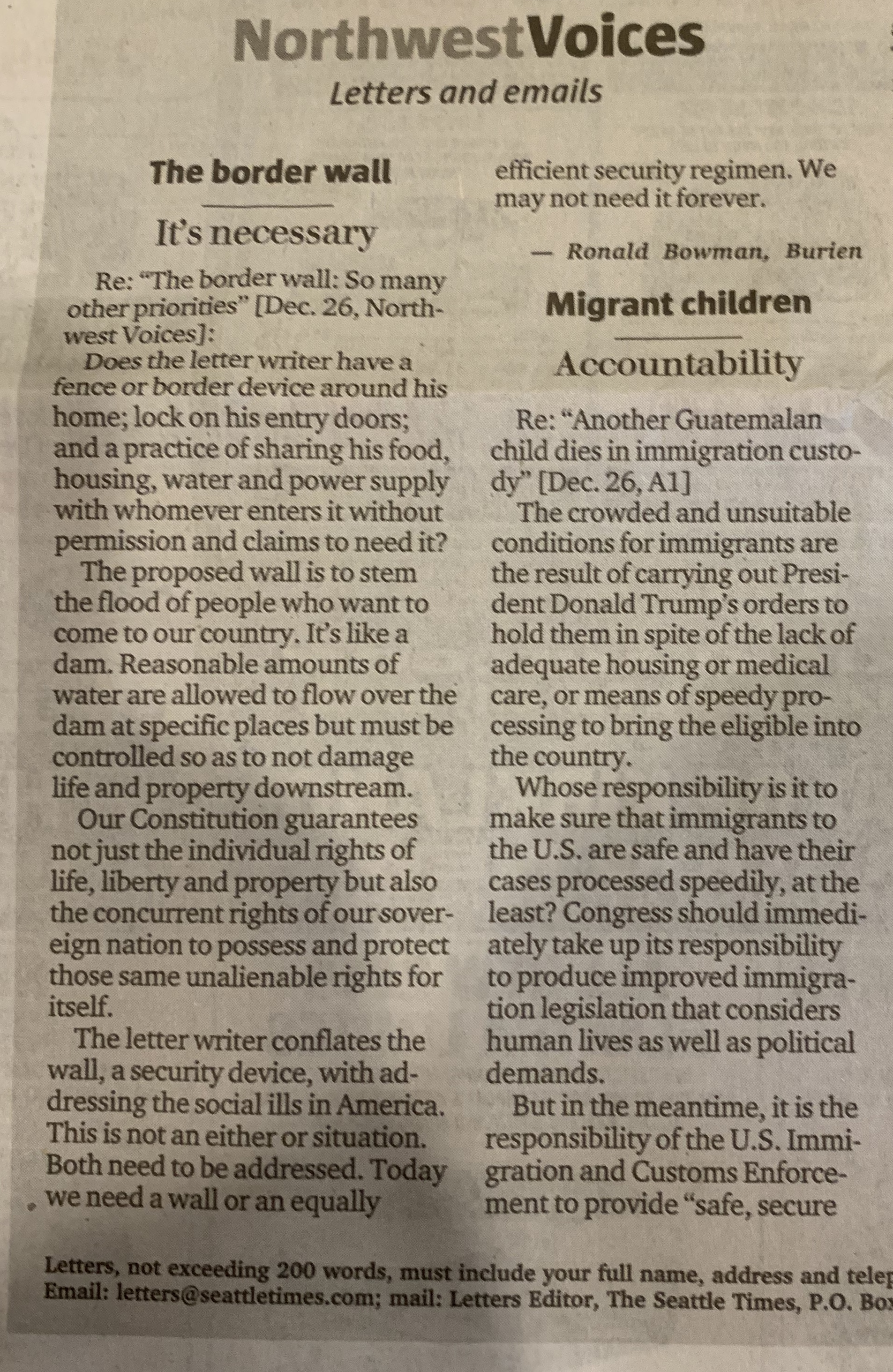 I wrote a letter to the editor of the Seattle Times and it was published on Dec 26, 2018. I have included the original text–their version gets to the meat of the subject, but is somewhat abbreviated.