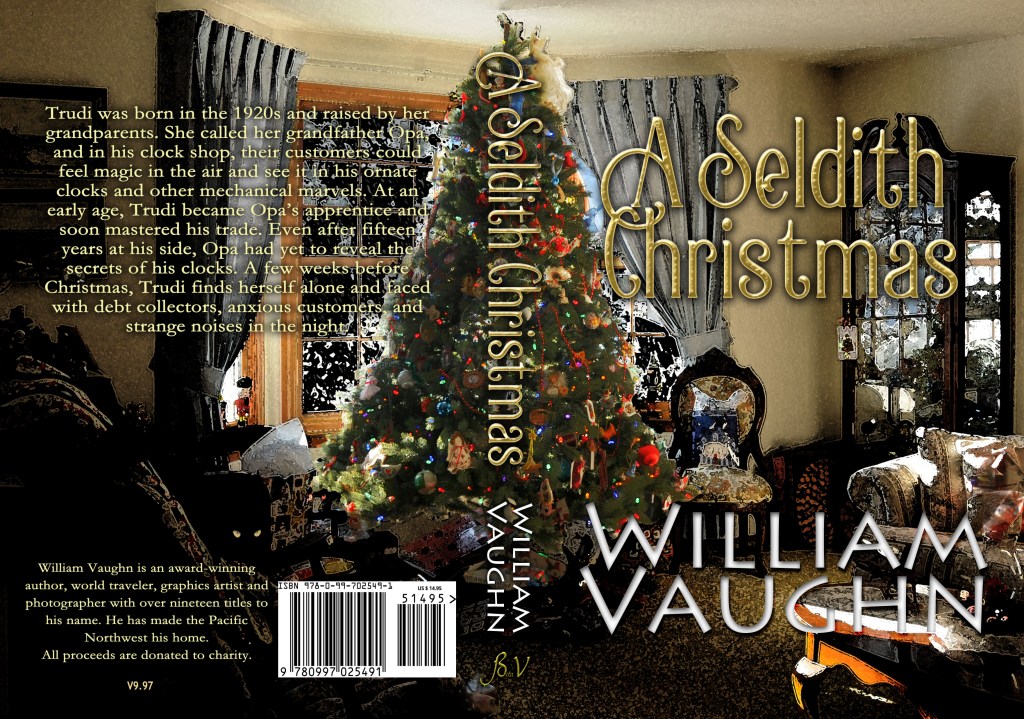 A Seldith Christmas is the latest addition to Mr. Vaughn’s growing list of Young-Adult books. While not a part of The Seldith Chronicles series it reawakens several of its principal characters. So, what’s the story about? We begin with a mystery, a family’s desperate, last-minute escape, and a long sea voyage. The story continues in a modest clock shop run by an old man whose skill at clockmaking has few peers. His granddaughter Trudi takes up his trade at age five and eventually takes over running the shop even creating her own inventions. When fortune takes its turn, Trudi finds herself alone, an orphan, facing demanding creditors, and customers. To make matters worse, her grandfather, never revealed the secret behind his marvelous, nay magical timepieces.